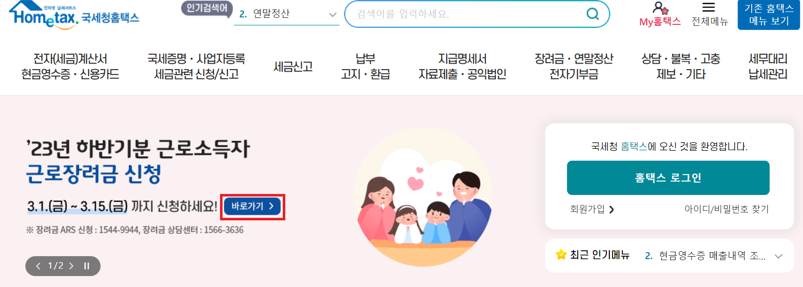근로장려금 지급 대상자 확인하기
