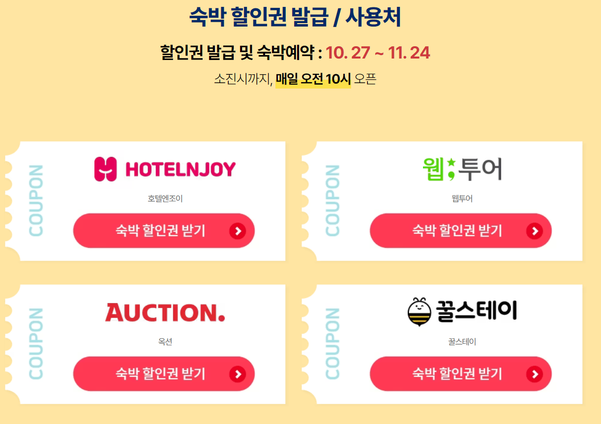 숙박 할인 페스타는 참여하는 온라인 여행사를 통해 진행됩니다.