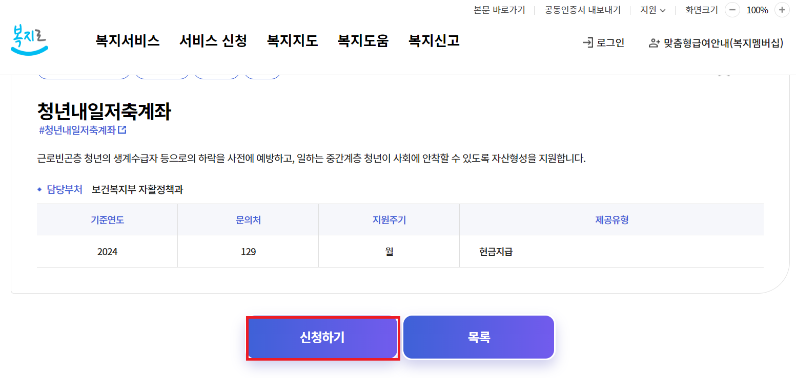 청년 내일저축계좌 신청방법 및 신청기간을 아래에서 알아봅시다.